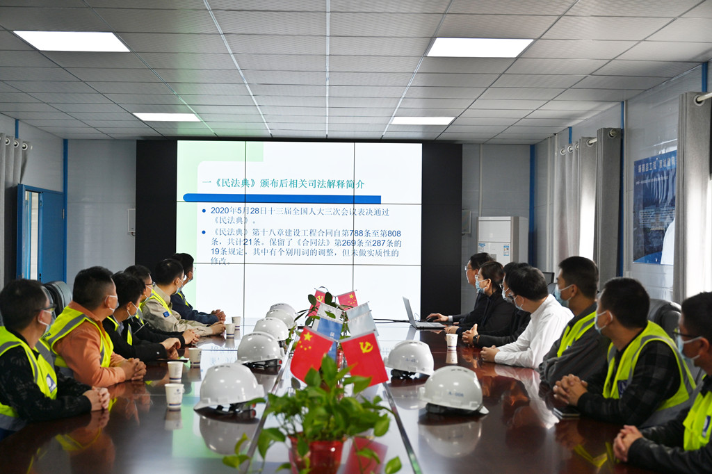 活動現(xiàn)場,漢江城建通過張貼展板、橫幅、發(fā)放宣傳資料、現(xiàn)場講解等方式,引導公司員工樹立法律意識。在大力宣傳《民法典》等法律法規(guī)的同時,結(jié)合公司經(jīng)營需要,特邀公司法律顧問何群濤律師,從民法典對企業(yè)發(fā)展的法律保護、對企業(yè)管理的影響、對建設工程合同法律風險防范等方面進行法律宣講,多角度闡釋《民法典》,并引用了建設工程施工方面的實際案例,深入淺出地進行了針對性講解,使大家充分認識到了《民法典》的重要性。