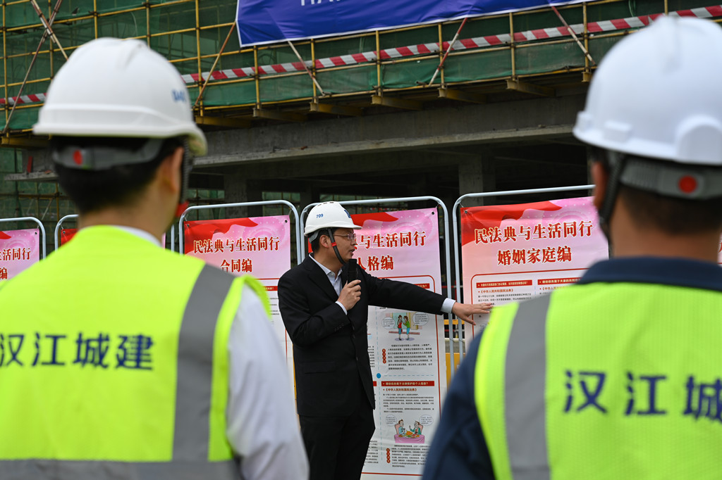 為深入學習宣傳貫徹習近平法治思想,進一步加強民法典普法工作,提升公司全體干部職工尊法學法守法用法意識,根據(jù)漢江國投《2022年度法治建設工作要點》要求,漢江城建于5月10日上午在鄂西北(襄陽)重大疫情救治基地開展“美好生活·民法典相伴”主題普法宣傳活動。