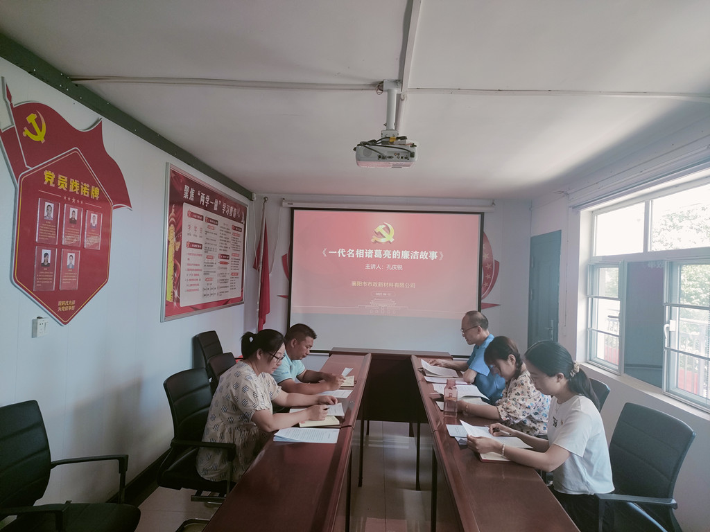 為進一步加強廉政文化建設,大力宣講廉潔理念,廣泛弘揚清風正氣,增強黨員干部的廉潔自律意識,近日,新材料公司組織全體黨員在會議室開展了以“一代名相諸葛亮的廉潔故事”為主題的廉潔文化宣講活動。